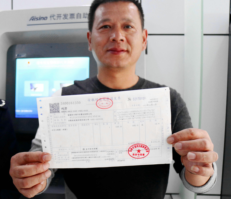 11月1日,宣州区纳税人李先生在区国地税联合办税服务厅,顺利拿到了全区首张自助终端代开的增值税普通发票和税票,这标志着自助代开增值税普通发票系统在宣州区正式启用。这也是全省首张自助终端代开的增值税普通发票。